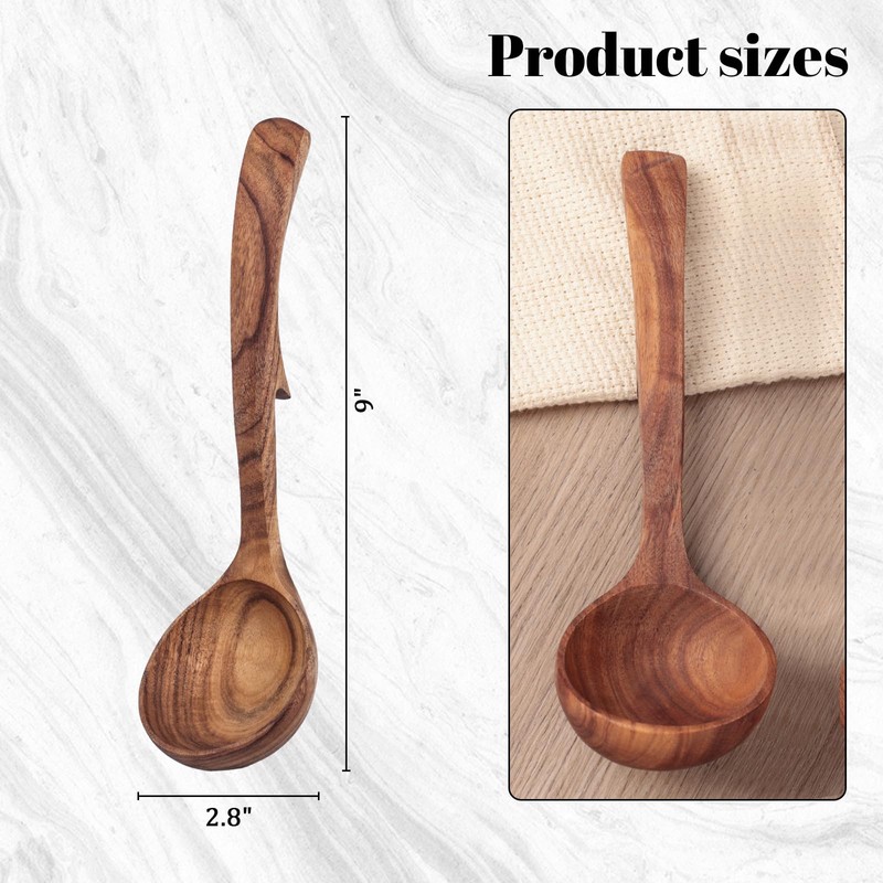 - Package Includes - The set includes 1 wooden ladle spoon measuring 9 x 2.8 inches, perfect for all your culinary needs.