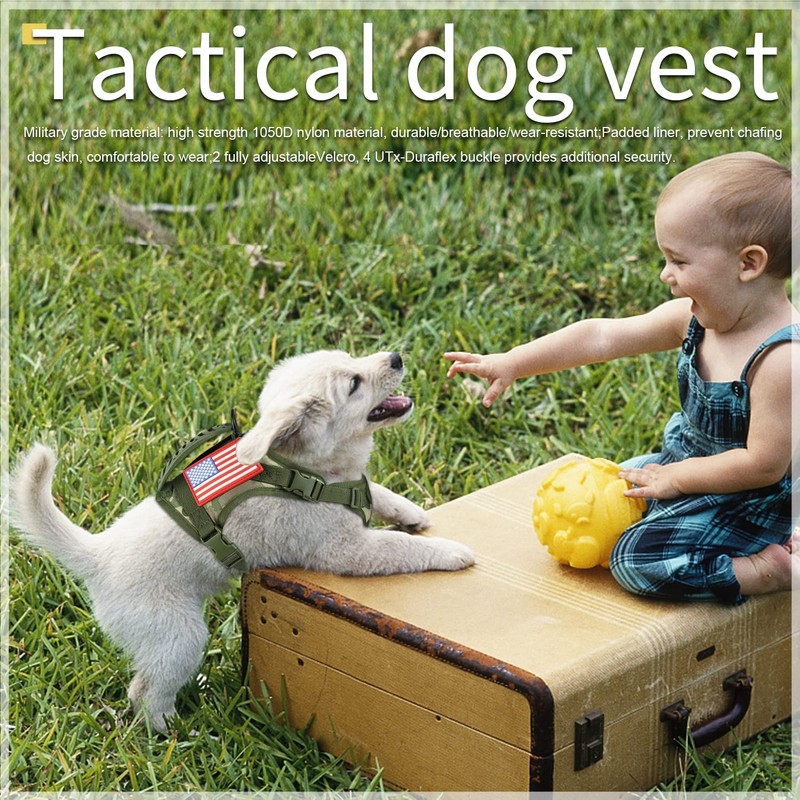 • Tactical dog harness FEATURES: 1050D Nylon Material; Rubber Handle for Pulling; International Stander BUCKLE; Force Point with BAR-TRACKY; D ring for Dog Leash; Molle system for Velcro; Multi-size and color for Choose