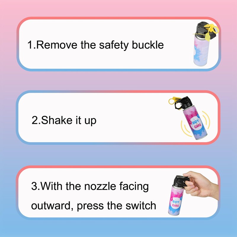 • Mystery revealed, full of suspense:Gender reveals that the bottom of the fire extinguisher hides the secret of pink or blue. Before revealing the gender of the baby, make sure to choose the correct color and tear off the sticker to create a suspense-filled moment for the live guests. When the colored powder is sprayed, the surprise and touch will be palpable.
