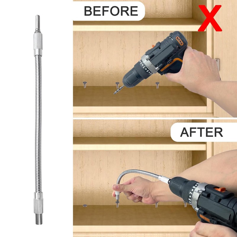 - Flexible und flexible Bohrerverlängerung: Sie lässt sich leicht biegen und um bis zu 360 Grad drehen, sodass Sie die Schraube an schwer zugänglichen Stellen genau erreichen können. Ideal für Aufgaben, die Flexibilität und Genauigkeit erfordern