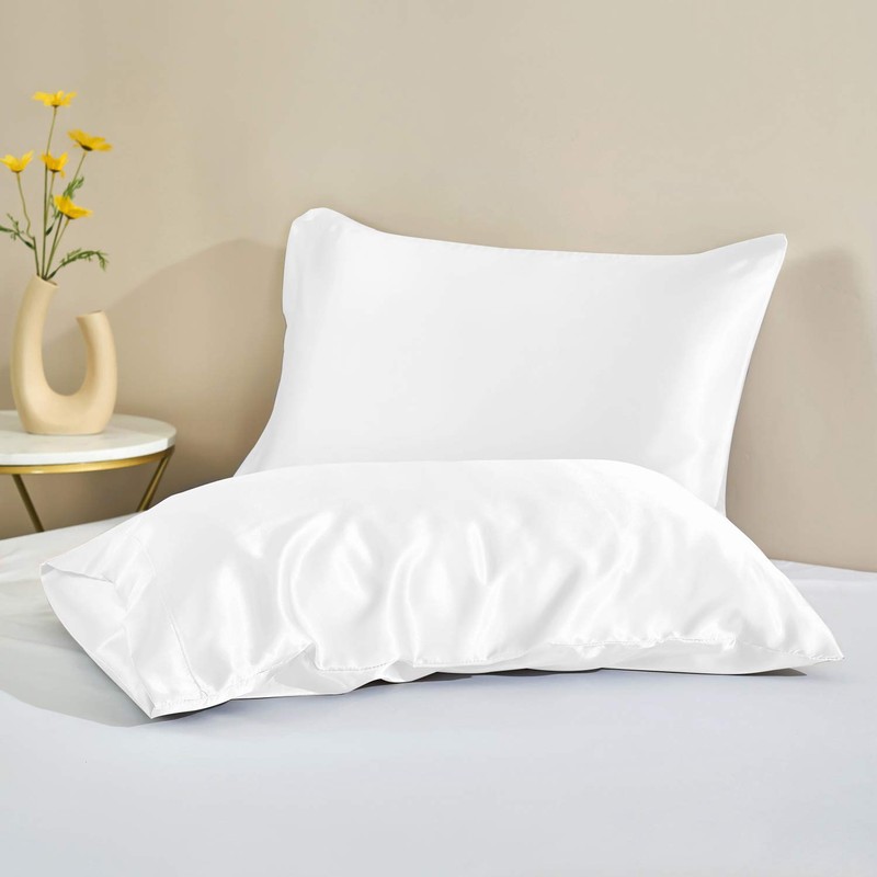 HAOK Satin Pillowcase for Hair and Skin, 2-Pack – Queen (20 x 26 inches) Satin Pillow Cases, Silky Soft Pillow Cover with Envelop Closure (White, Queen)