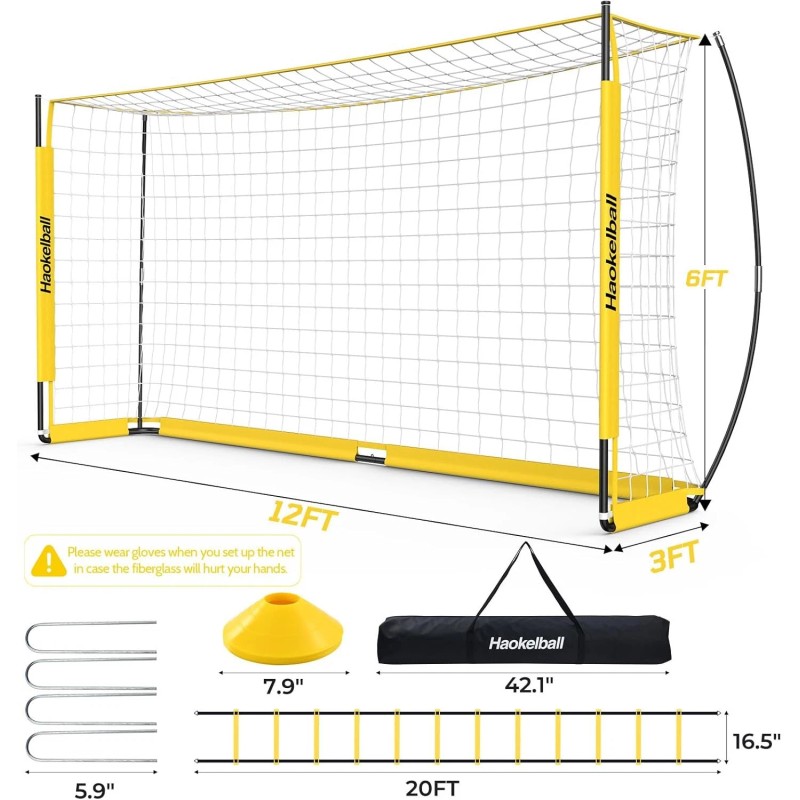 Haokelball 12×6 FT Portable Soccer Goal Net w/ Cones Frame Backyard Football Training Set