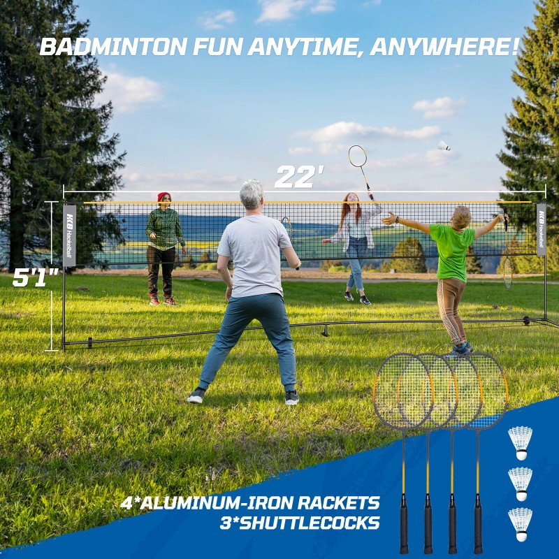 - Quick Setup & Complete Accessories: Simple to assemble with metal ground stakes, and comes with badminton rackets, pickleball paddles, PVC volleyball, balls, a pump, and a carry bag, making storage and transport easy
