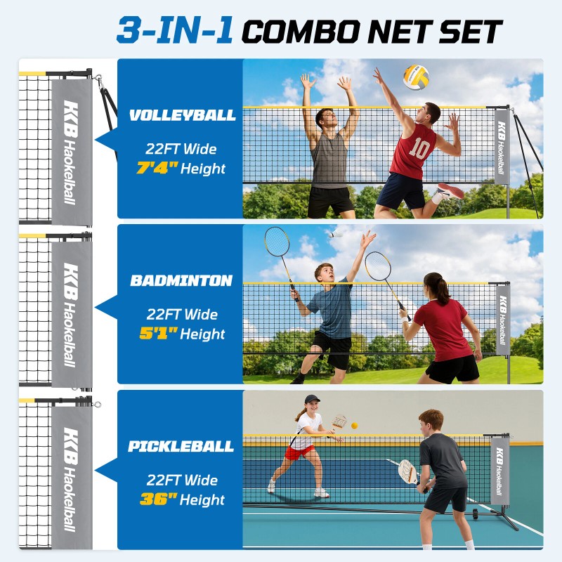 Haokelball 22FT Portable Pickleball Badminton Net Set All-in-One Combo Set Adjustable Poles