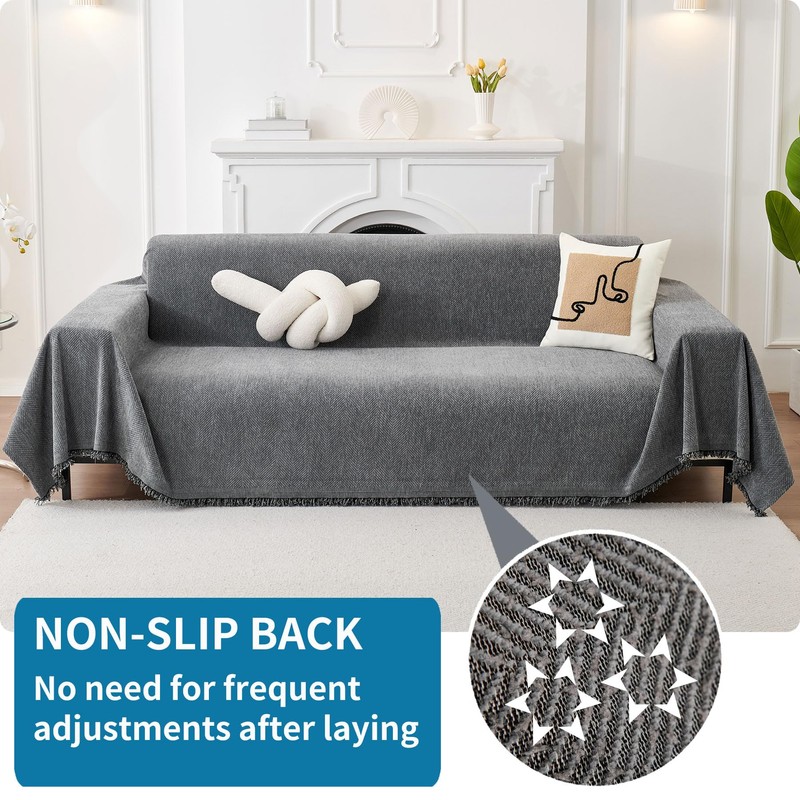 - UNIQUE ANTI-SLIP: Unlike other ordinary couch cover Blanket, our non-slip sofa cover has added anti-slip particles on the reverse side, which can ensure that oversized couch cover won't slide, even when someone sits on the sofa, it won't move around or generate displacement, when sofa protector is finished laying, you don't need to adjust couch protector frequently, it's a very labor-saving.