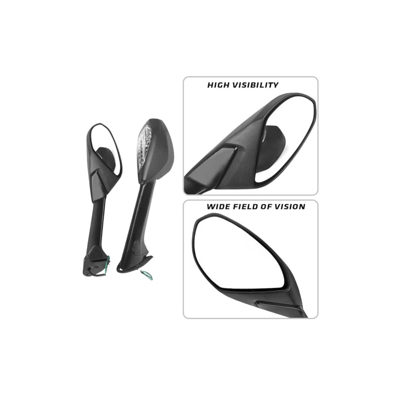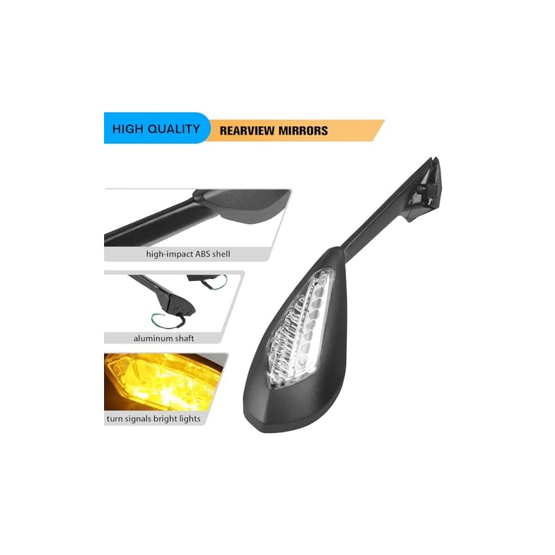- EASY TO INSTALL: Direct bolt-on to the stock mounting point. Rearview side mirrors have high definition and clear wider vision, turn signals bright lights ensure you a safty riding