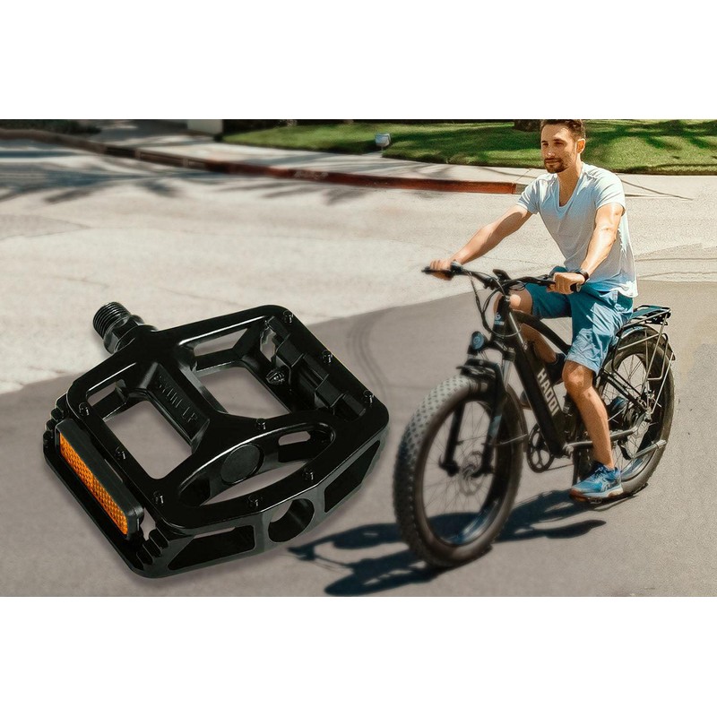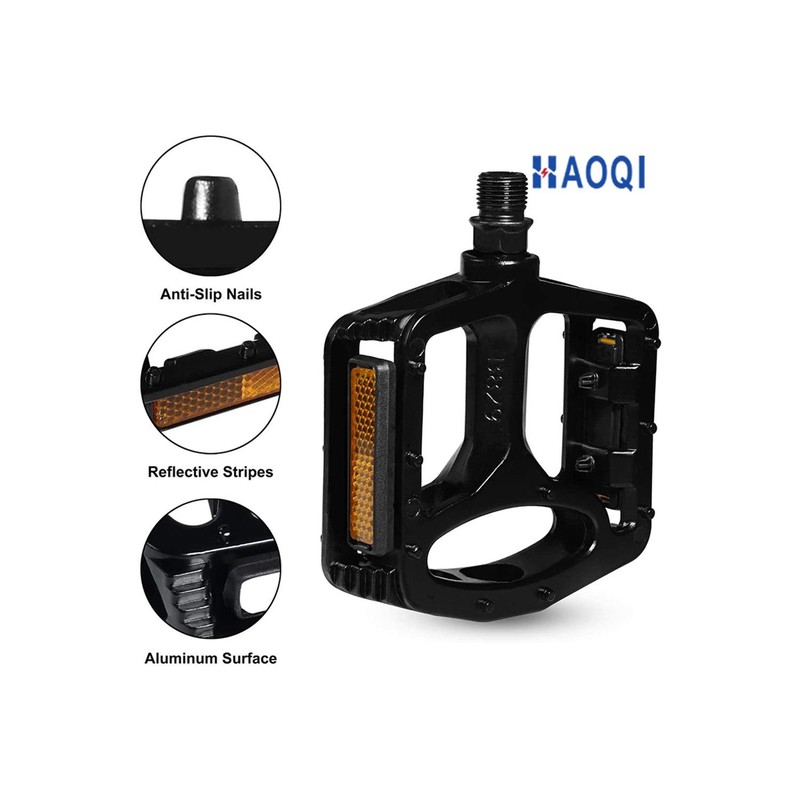 STURDY & DURABLE - The mountain bike pedals use high-strength aluminum alloy material to make the pedals feature lighter weight and durability at the meantime. Ball bearings system optimizing every your platform Pedal stroke,slide smoothly, High-strength aluminum casting body makes the bike pedals more durable.