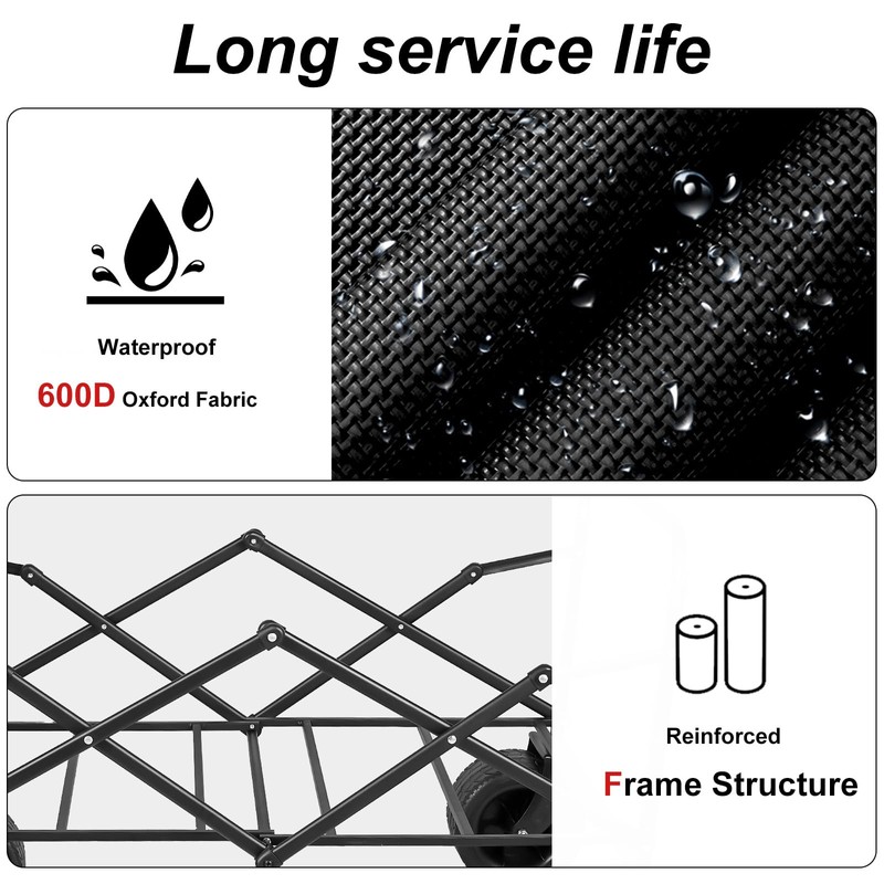 - Portable Design:This utility wagon cart is so convenient that it requires no tools and can be folded and unfolded in just five seconds. After folding, you can easily put it in the trunk of your car and take it shopping, camping. When not in use, you can store it in a closet or storage room, taking up no space
