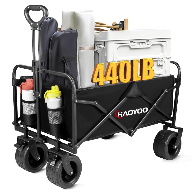 HAOYOO Collapsible Foldable Wagon with Wheels, 440lbs Heavy Duty Utility Beach Wagon for Grocery, Sports, Garden, Shopping, Camping