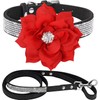 haoyueer Rhinestone Dog Collar, Cute Iridescent Sparkly Soft Suede Dog Cat Rhinestone Collar with Leash Crystal Diamond Pet Collar for Dogs Puppies L Black -