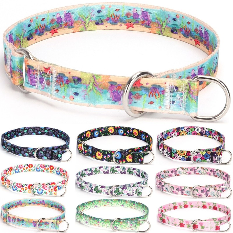 haoyueer Training Dog Collar, No Pull Martingale Collar, Slip Collar with Slidable Stop Ring for Small, Medium, Large Dogs (M, Ocean)