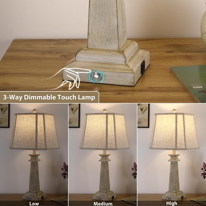 - 3-Way Dimmable Touch Lamps: This nightstand lamp features intuitive touch control with 3 adjustable brightness levels - soft glow to full illumination. Easily customize your lighting for reading, relaxing, or ambiance with a simple tap. Perfect for bedrooms, living rooms, or any space needing versatile light.