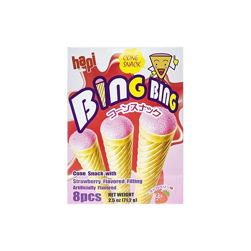 Hapi Bing Bing Cone Snack with Strawberry Flavored Filling, 2.51 Ounce