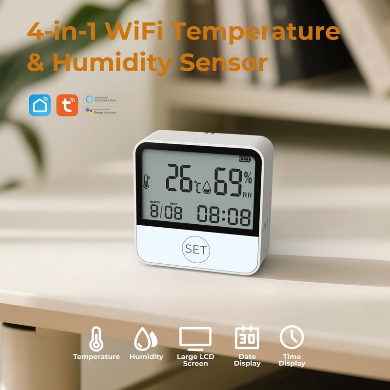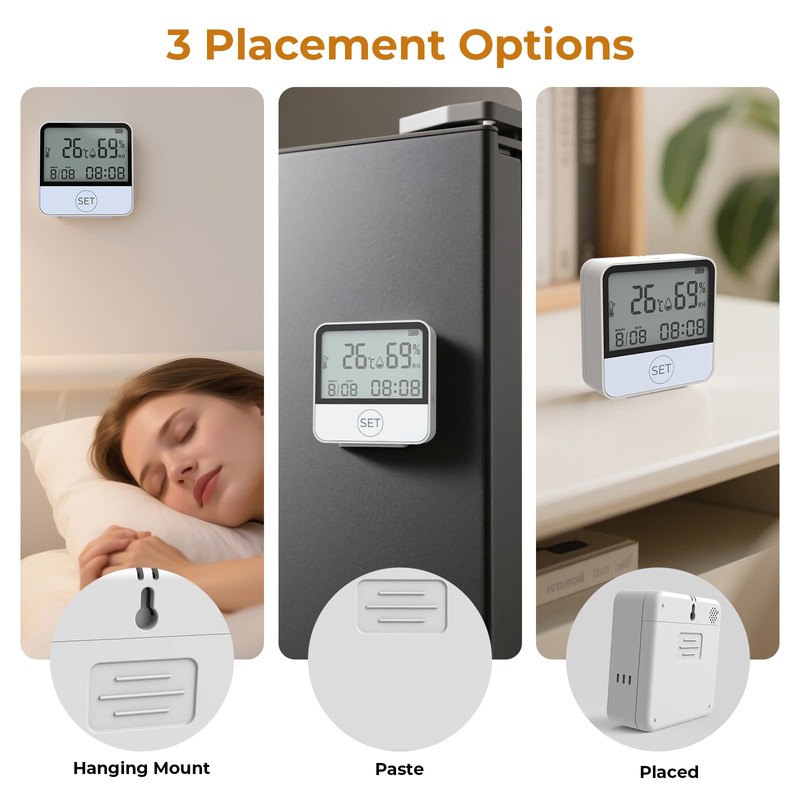 - 4-in-1 TEMPERATURE AND HUMIDITY METER: The digital hygrometer display temperature, humidity display, time and calendar display, allowing you to have a clear understanding of the weather conditions for each day.