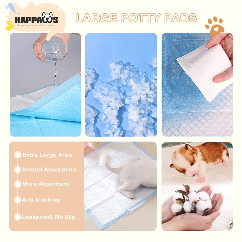 HAPPAWS Pee Pads for Dogs, 5-Layer Leak-Proof Puppy Pads Pet Training Pads fo...