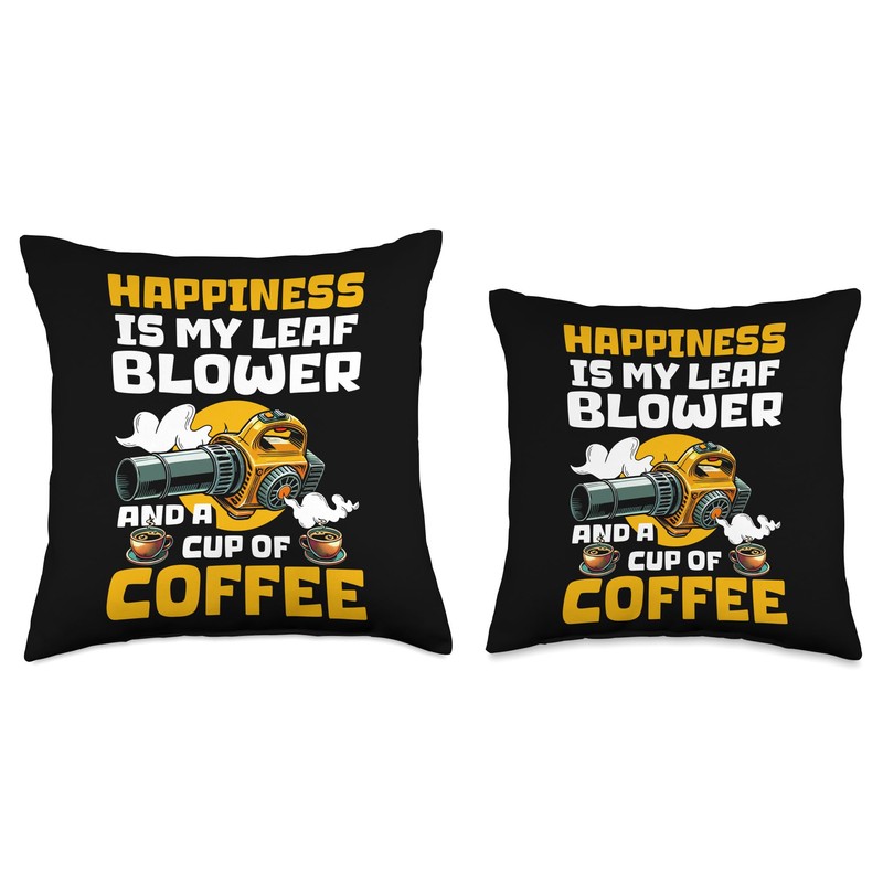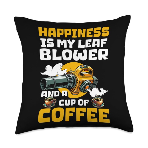 Happiness Is My Leaf Blower And A Cup Of Coffee Throw Pillow