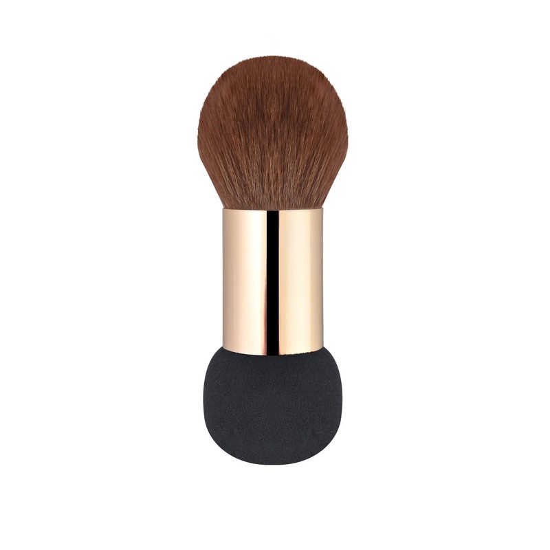 HAPPITON Dual-Purpose Makeup Brush - Brown Soft Bristles for Powder & Black Sponge Puff for Blending