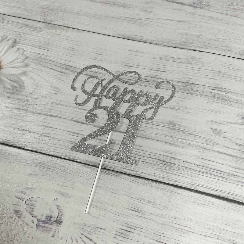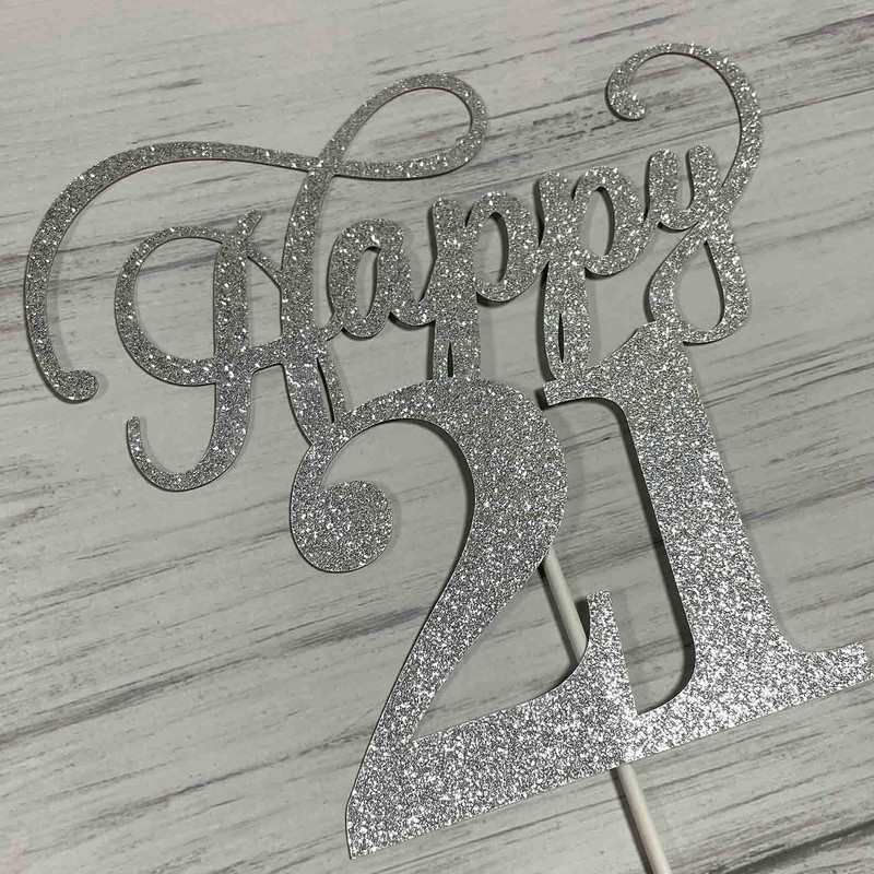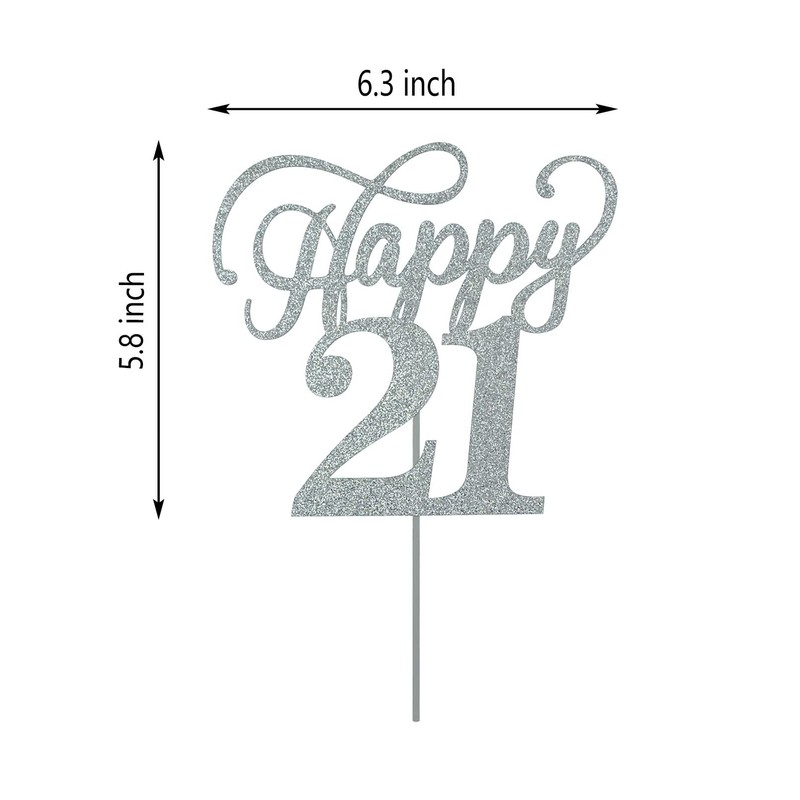 Happy 21 - Decoración para tartas para Hello 21 / Cheers to 21 Años / 21 Cumpleaños / 21 Aniversario Suministros de decoración de fiesta (purpurina plateada de doble cara)