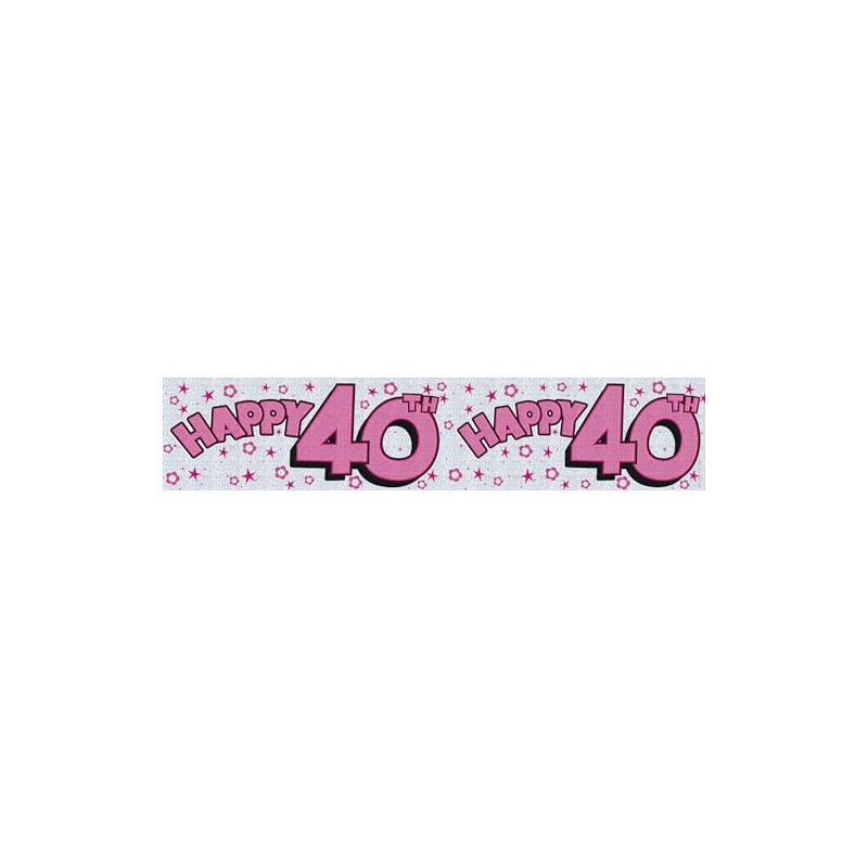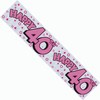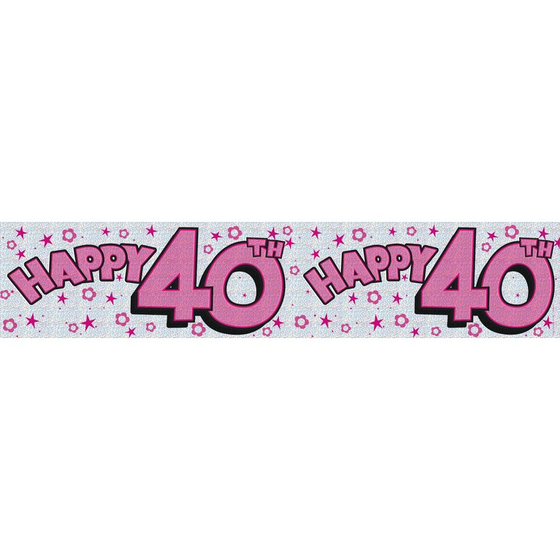 Happy 40th Birthday Party Banner Age 40 Giant Extra Wide PartyDecoration Garland Pink And Silver Flower Feminine Recyclable Eco Friendly Holographic Shiny Sparkly Party Banner