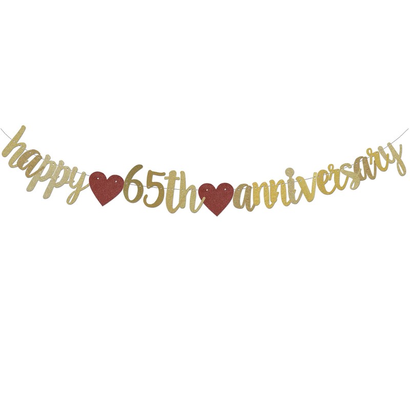 Happy 65TH Anniversary Banner Sign Gold Paper Glitter Party Decorations for 65TH Wedding Anniversary Party Supplies Letters Gold ZGMJ