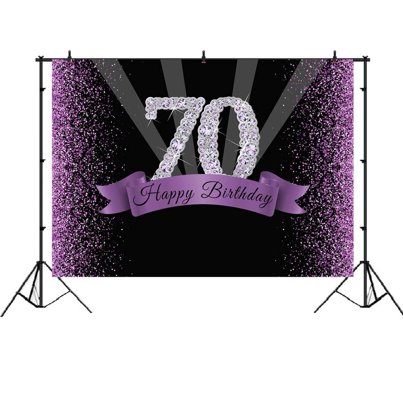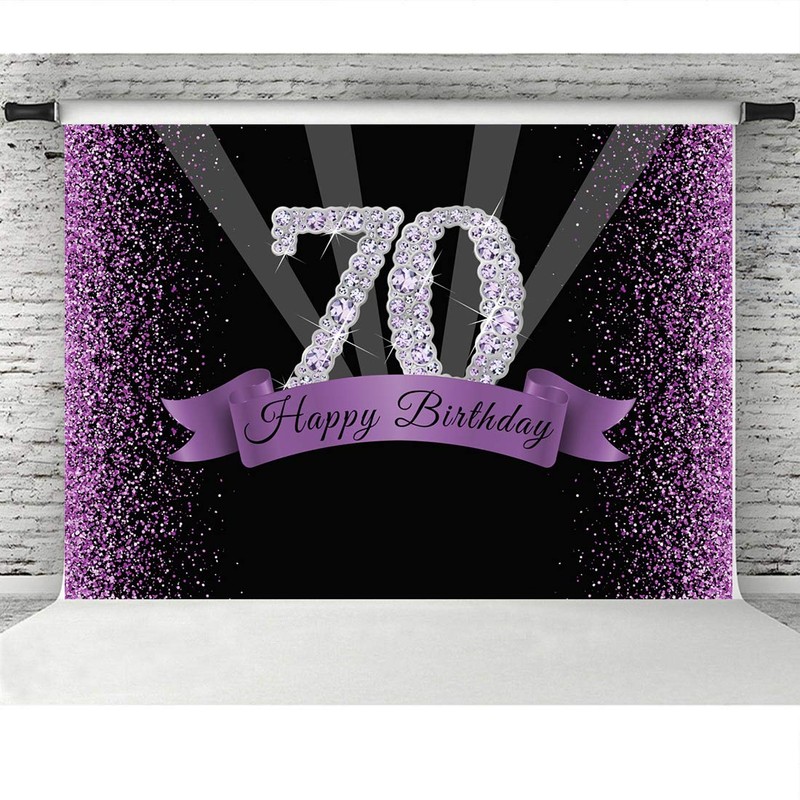 Happy 70th Birthday Photography Backdrop Glitter Purple and Black Dots Background for Adult Woman Birthday Party Decorations Shining Diamond Number 70th Birthday Banner for Photo Studio Props 7x5ft