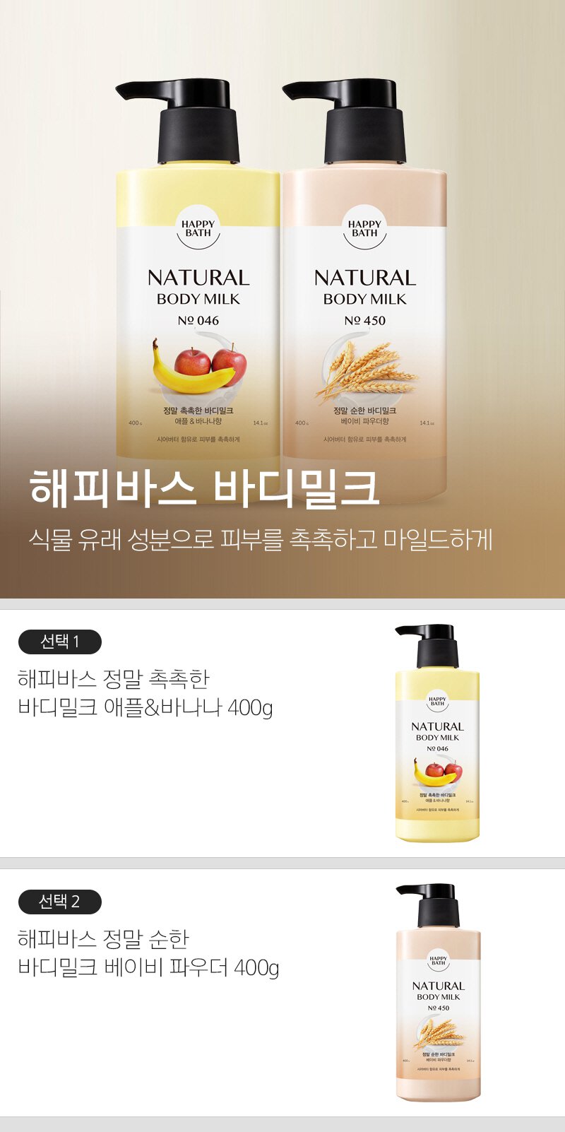 Happy Bath [Coupon Discount] Happy Bath Really moist/mild body milk (lotion) 400g 1-piece collection (optional), 02 mild body milk (lotion) / 해피바스 [쿠폰할인]해피바스 정말 촉촉/순한 바디밀크(로션) 400g 1입 모음 (옵션), 02 순한 바디밀크(로션)