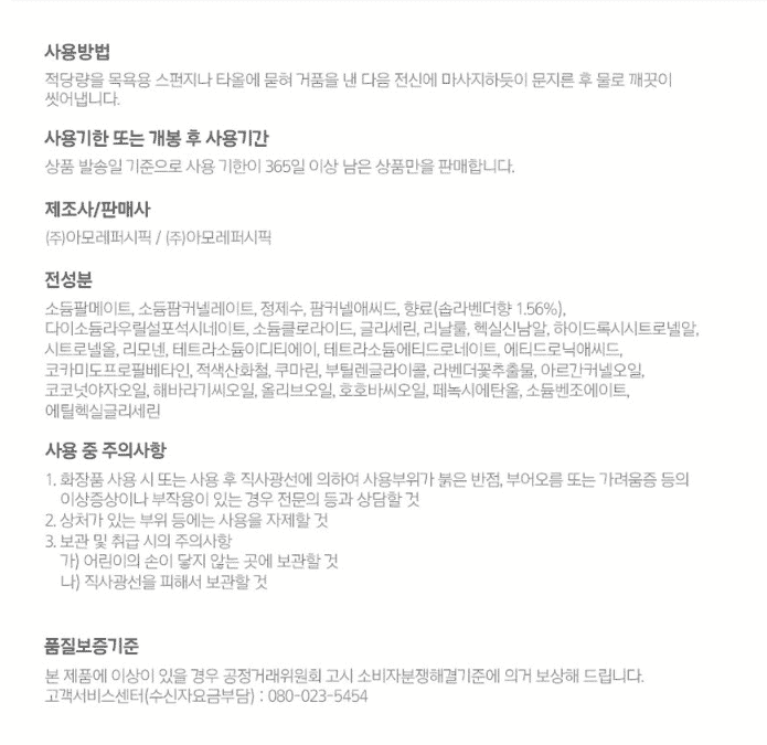- A/S manager and phone number or consumer consultation phone number: See detailed product description