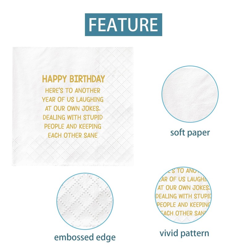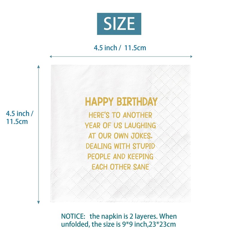 - 🎁【Wide Usages】🔸Great decoration for parties, cocktail parties, luncheons, celebrations or buffets.🔸Keep your table clean and free from spilled food, milk, and juice.🔸Good Gift: are you struggling to find a party gift that is fun enough ? Then this product is just right for you. This napkin is fun and practical. The friend who receives this gift will be happy.