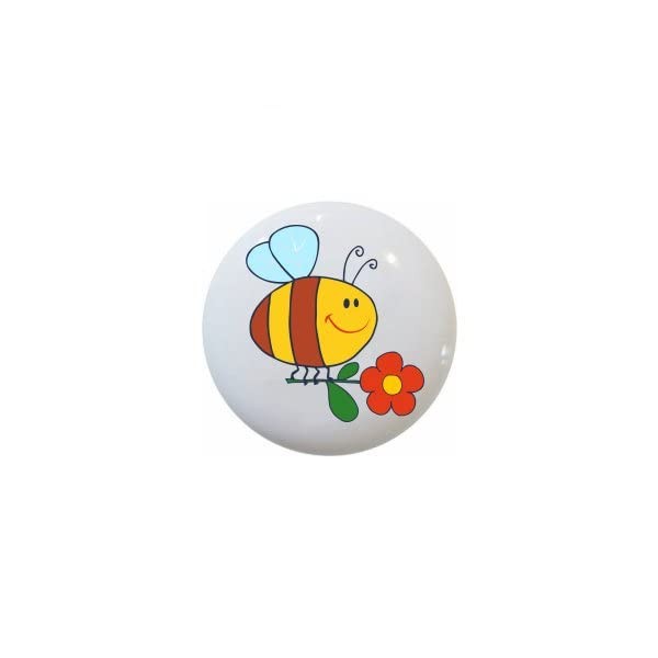 Happy Bumblebee Bumble Bee Flying With Flower - GF Images - DECORATIVE Glossy CERAMIC Cupboard Cabinet PULLS Dresser Drawer KNOBS