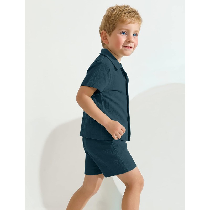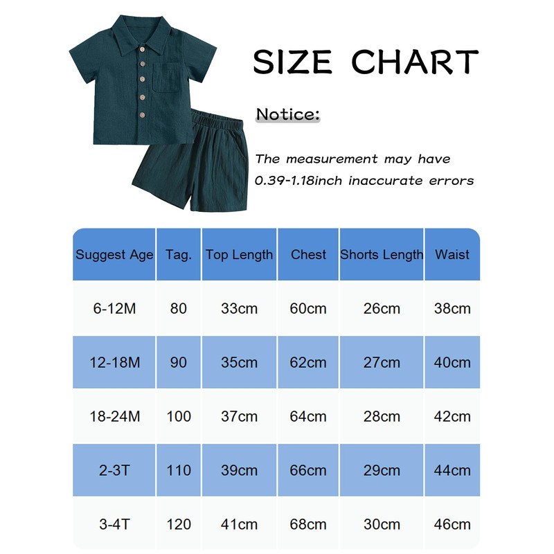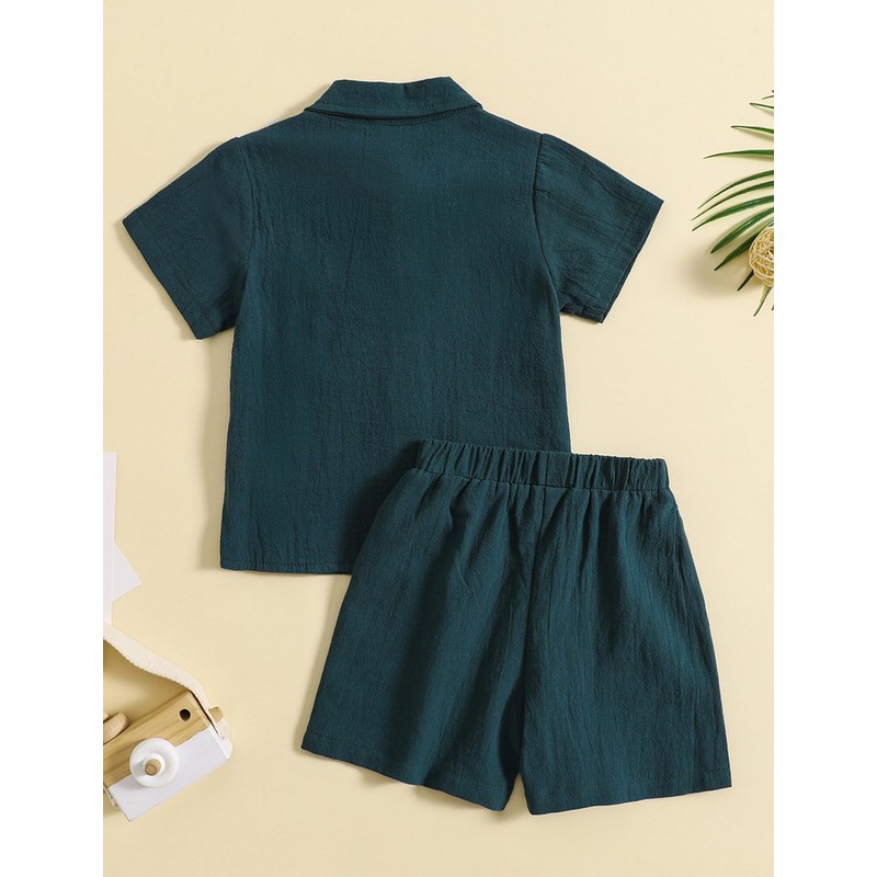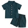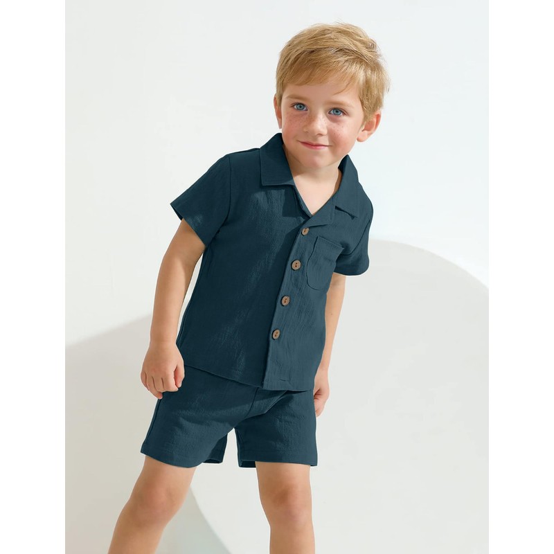 Happy Cherry Cotton Boy Sets Summer Suit Outfit Linen Button 2-3T Dark Green B