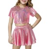 Happy Cherry Girls Metallic Outfit Sequin Hip Hop Dance Shiny Crop Top for Dancing Raves Festivals Metallic Skirt 10-11T