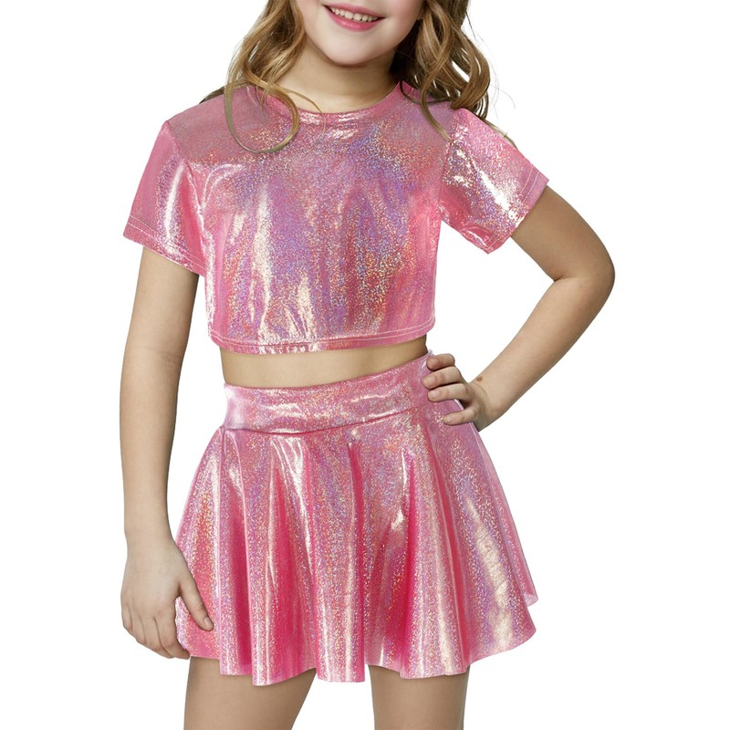 - Eye-catching Design: Stand out from the crowd with this Girls Metallic Outfit featuring a shiny crop top and a metallic skirt. The sequin details add a touch of glamour, making it perfect for dancing, raves, festivals, or any hip hop dance performance.