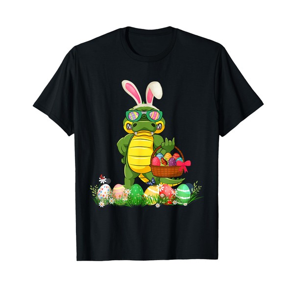 Happy Easter Bunny Alligator Holding Easter Egg Basket T-Shirt