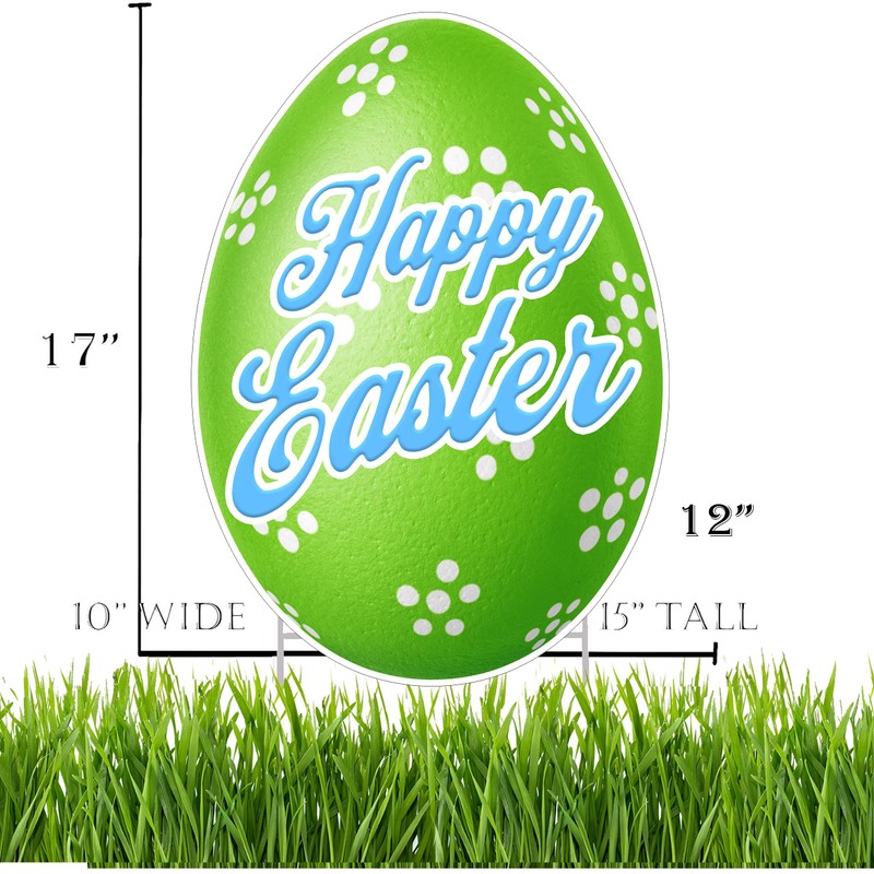 - Happy Easter This Large Yard Sign With Stakes High Quality Weatherproof and Can Be Hung On A Fence Door Or From a Tree. This Perfect Easter Decoration Lookg great on a Pathway Sidewalk or Walkway or Middle of the Lawn