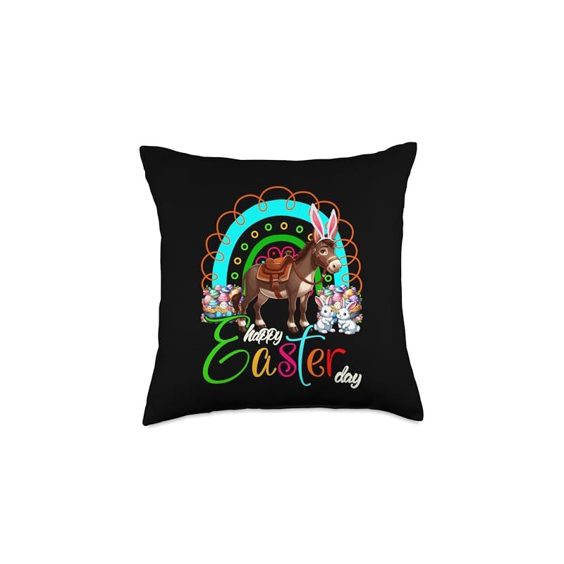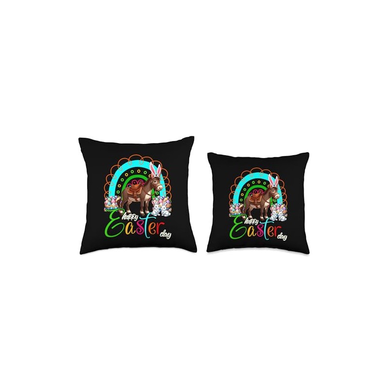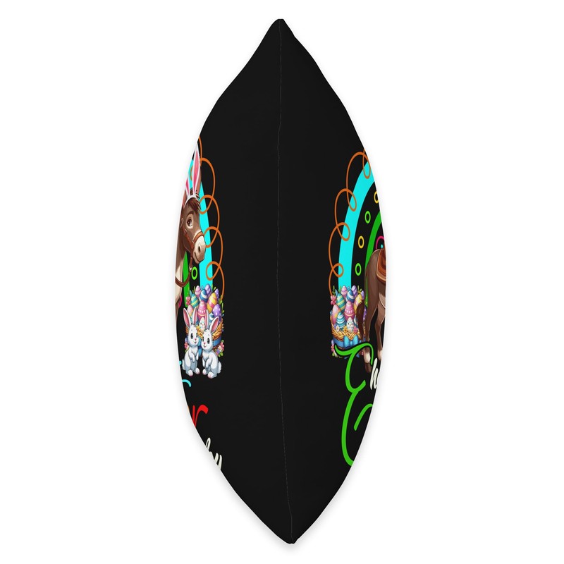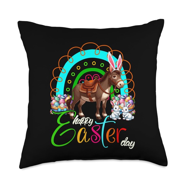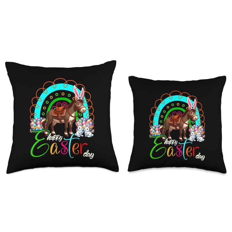 Happy Easter Day Bunny Donkey Chocolate Eggs Basket Rainbow Throw Pillow