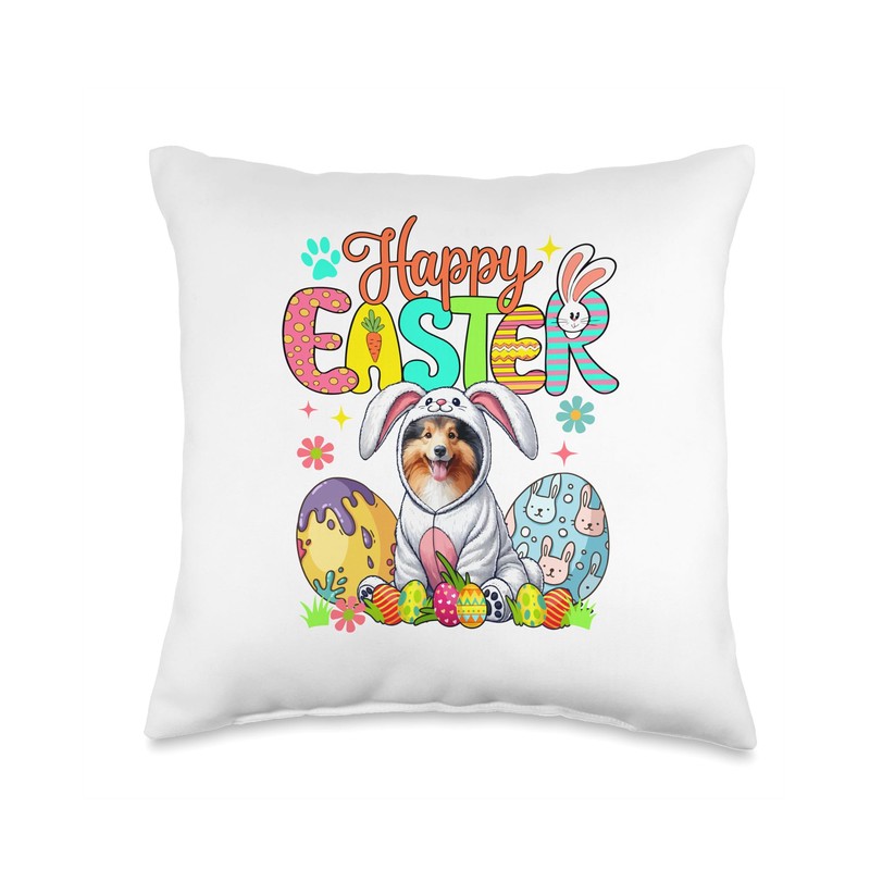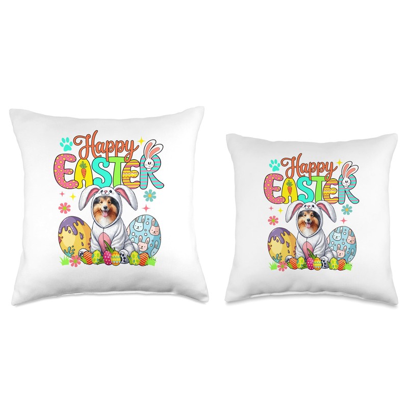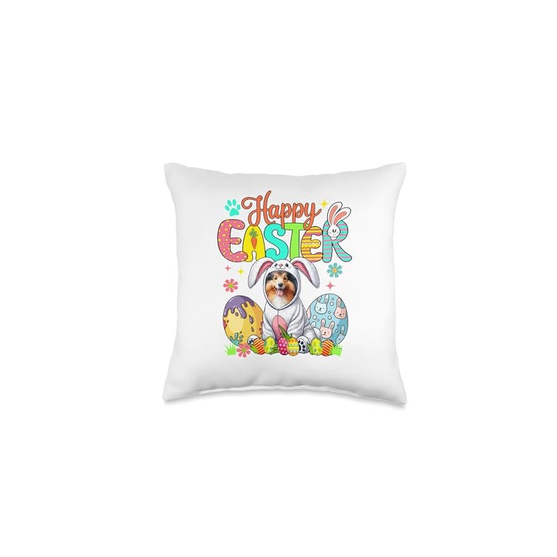 Happy Easter Sheltie Cosplay Bunny Chocolate Eggs Owner Throw Pillow