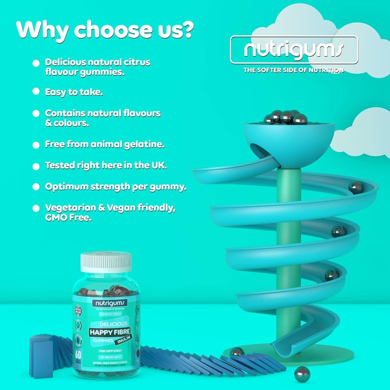 • 3.8g of Fibre per Serving: Each serving of 2 gummies provides 3.8g of Inulin (chicory root) fibre to support digestive health.