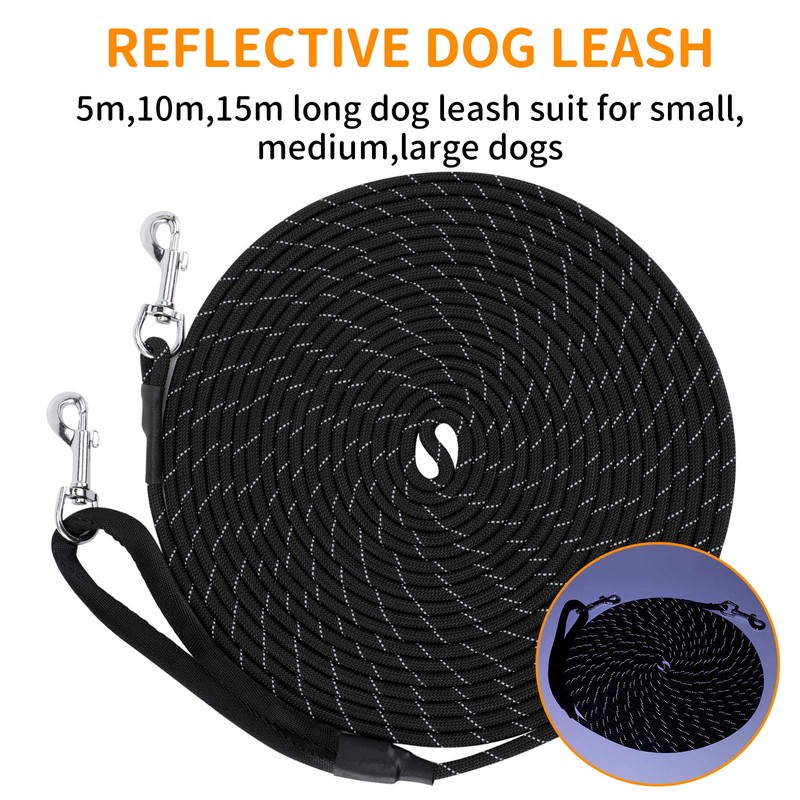 - Long leash for dogs of different types: 0.8 cm diameter, length: 3 m / 9.8 ft S: 5 m / 16 ft, M: 10 m / 3 ft, L: 15 m / 49 ft, 20 m / 65.6 ft, 5 sizes suitable for different training purposes and perfect dog control. The extended belt is perfect for hiking, camping, training, hunting, backyard, beach, recall training, swimming and other activities! The length is enough to track the movement of the pet in sight and prevent the pet from getting lost
