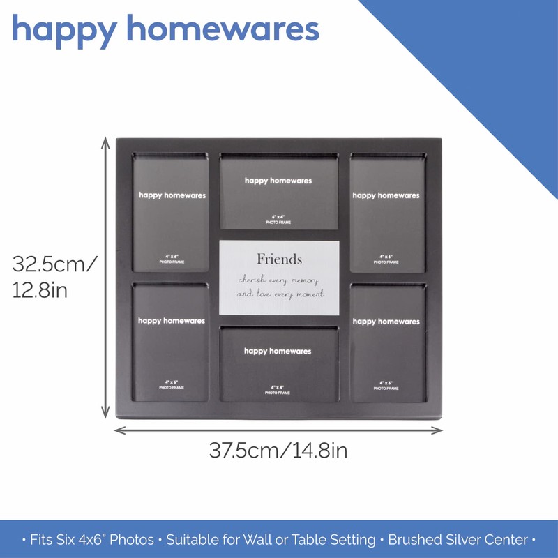 Happy Homewares Modern Black Multi Collage Picture Frame with Friends Wording and Cute Phrase - Cherish Every Memory and Love Every Moment | for Table or Wall