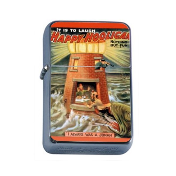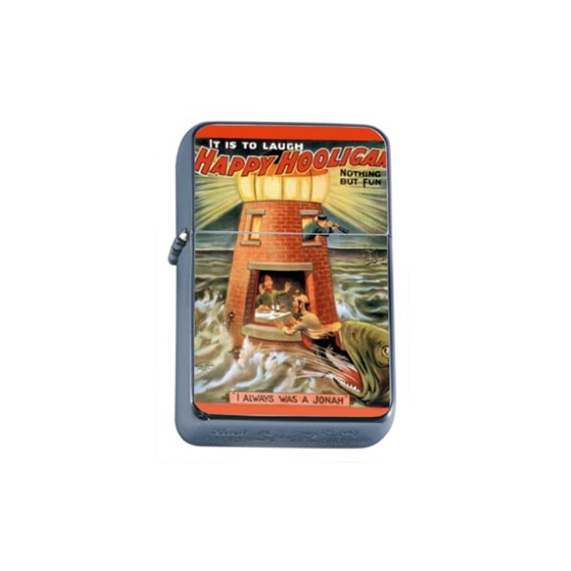 Happy Hooligan Theater 4 Windproof Refillable Flip Top Oil Lighter with Tin Gift Box D-412