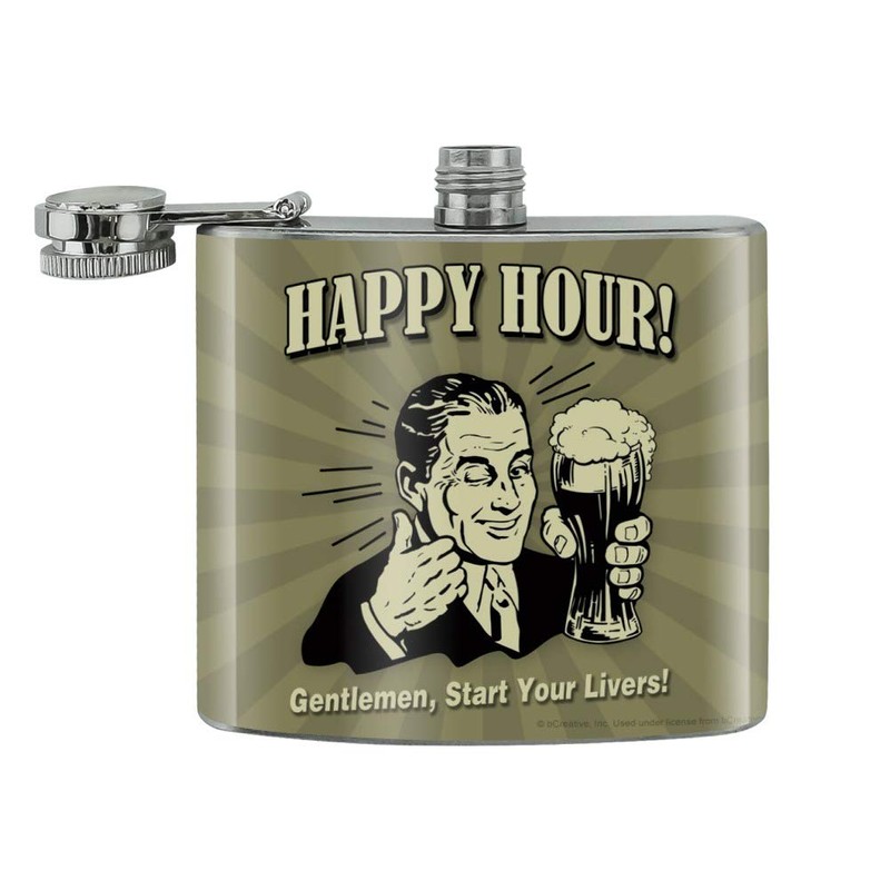 Happy Hour Gentlemen Start Your Livers Funny Humor Stainless Steel 5oz Hip Drink Kidney Flask