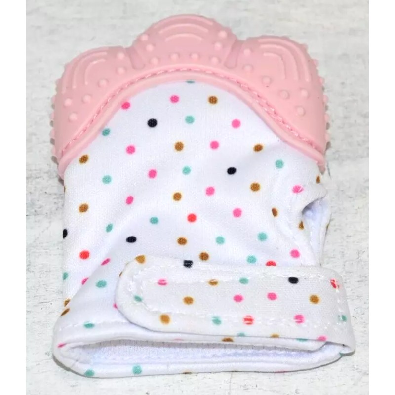 Happy Kids Silicon Teether Mitten Pink with Polka Dots Secures At Wrist New