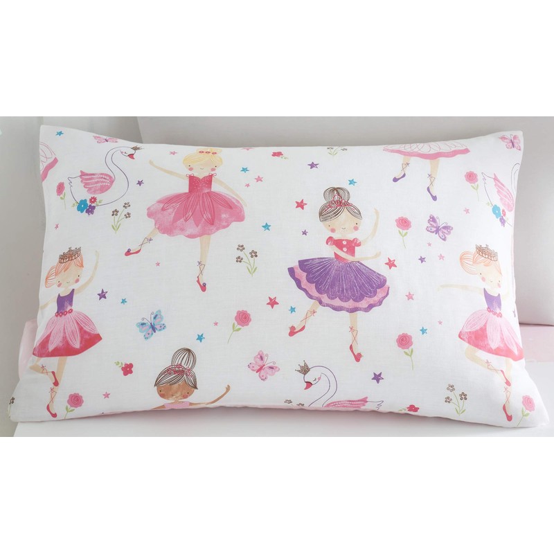 Happy Linen Company Kids Girls Prima Ballerina Ballet Dance Pink Reversible Toddler Cot Bed Bedding Duvet Cover Set