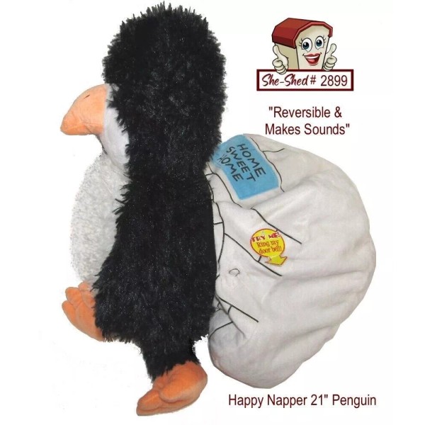 The Jay at Play Happy Napper Penguin Igloo turn from an igloo-shaped plush toy into a cuddly pet and then back again. Your child will love playing with the penguin toy until her/she gets tired and will happily sleep once the playtime is over in the Happy Napper pillow. If your child wishes to the Happy Napper's sleeping sounds, you simply have to ring the bell. When it is time to wake up for your child, simply unzip the door of the igloo and pop out the Happy Napper.