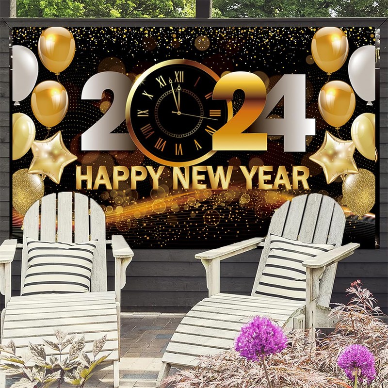 Happy New Year Decorations 2024, Large New Year Background Banner, Happy New ...