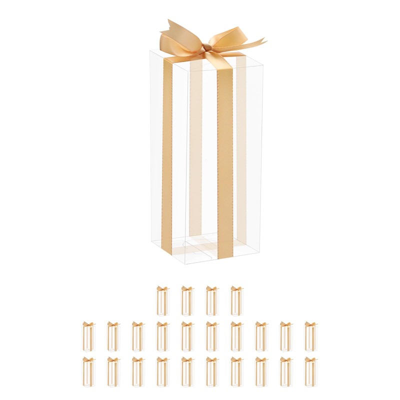 HAPPY POTATO 25 Pack PET Clear Party Favors Boxes with Ribbon, 5"x2"x2" Trans...