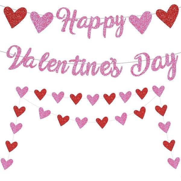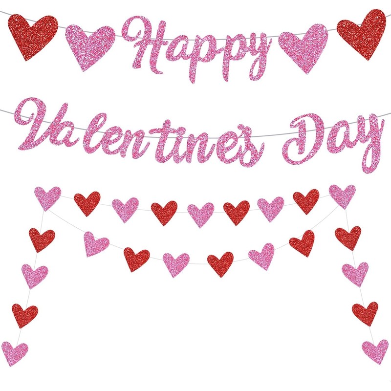 • 【What you will get】3pcs banner:"Happy Valentine’s Day" shiny banner consists of 2pcs banner.And 1pcs red and pink glitter heart shape banners, shiny color and beautiful design can decorate your party well.