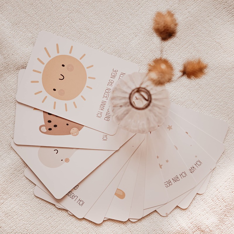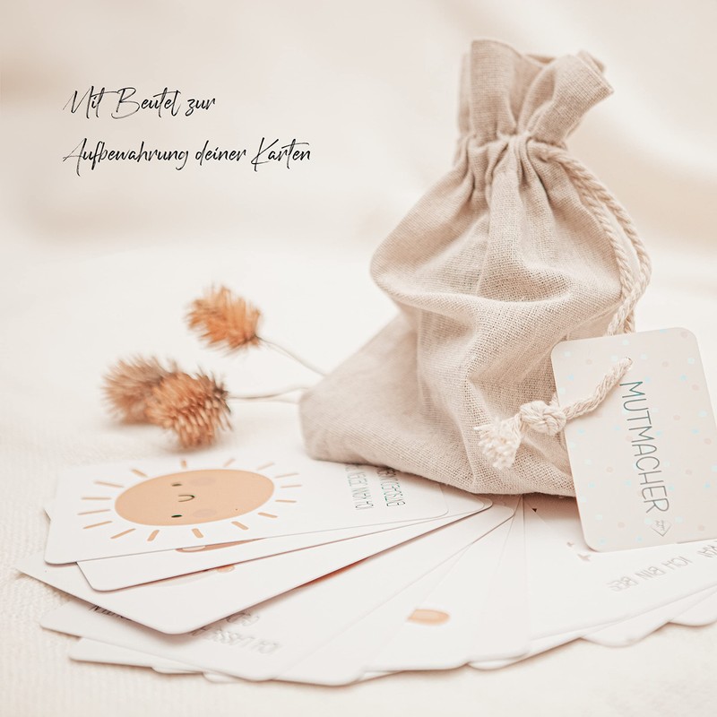 - ♥ Lovely motifs. Loving design courage for every day - well packaged in a high-quality cotton bag and with wooden stand on request. So the cards for you and your child become the perfect companion and daily courage ritual.