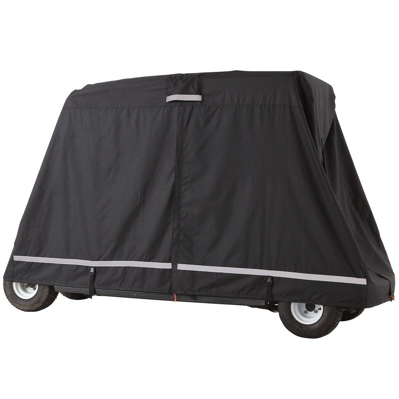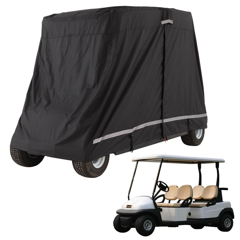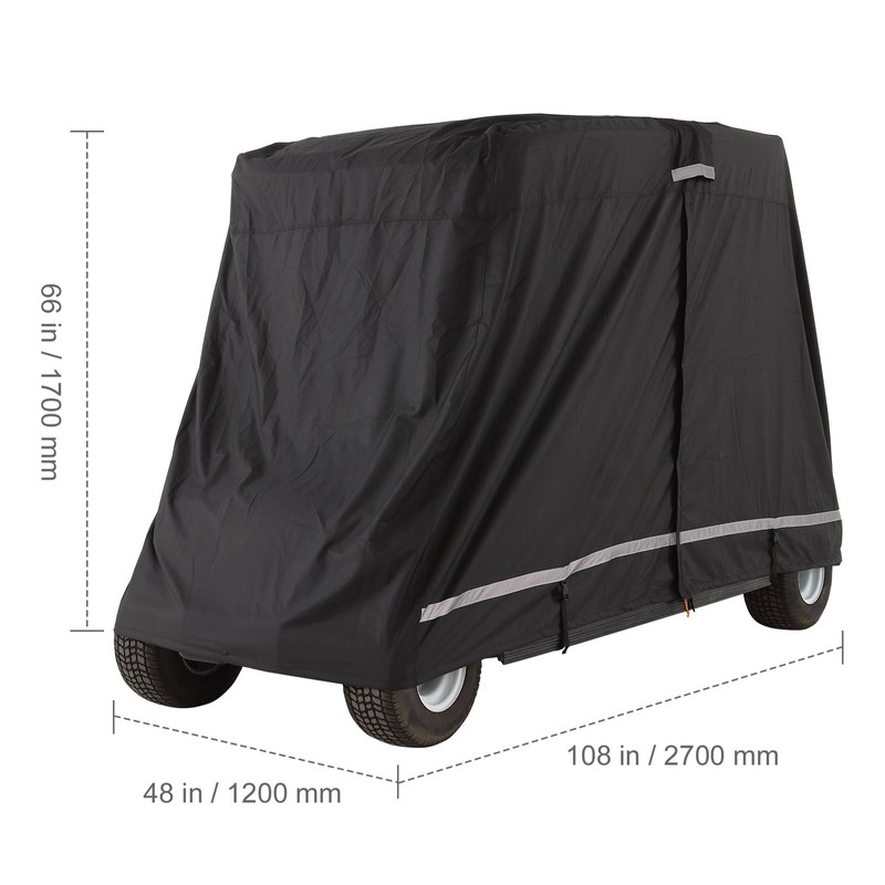 - Fully Enclosed Golf Car Cover: Happybuy's cover fits most 4-passenger carts with dimensions of 108x48x66 inches.