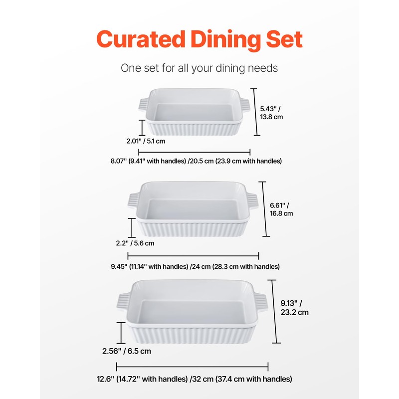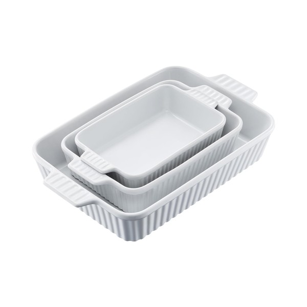 Happybuy Ceramic Baking Dish, 9" x 13", Bakeware Set of 3, Rectangular Casserole Dish Set, Baking Pans with Handles, Oven Secure, Lasagna Pans Deep for Cooking